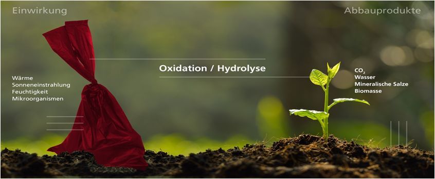 Der biologische Abbau unserer Hundekotbeutel erfolgt im Wesentlichen durch Oxidations- und Hydrolyseprozesse. Mikroorganismen wie Bakterien, Protozoen oder Pilze bzw. Enzyme nutzen das Material als Nahrung und Energiequelle. Nach dem Abbauprozess der Kotbeutel bleiben als Abbauprodukte lediglich Wasser, Kohlendioxid (CO2), mineralische Salze sowie Biomasse zurück.